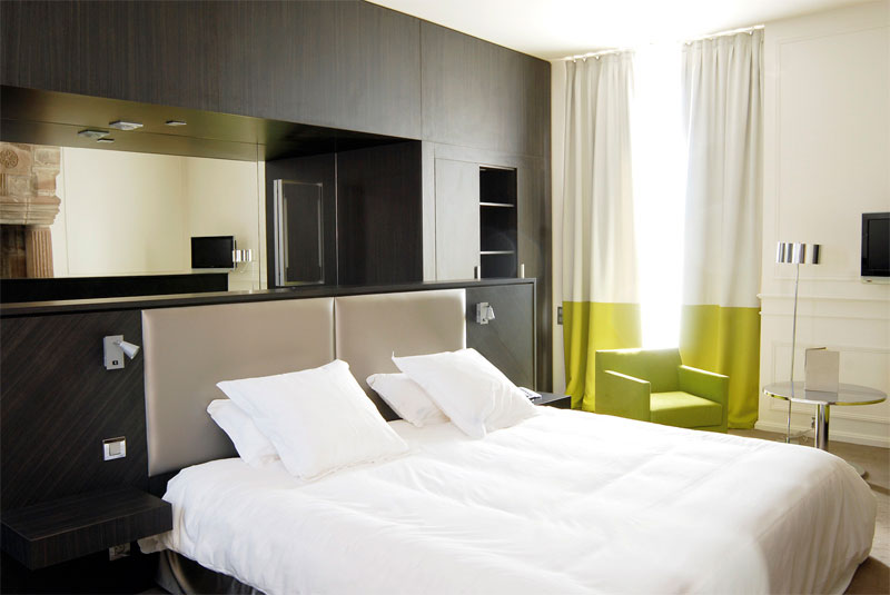 Aménagement intérieur et décoration pour une maison de maitre à Brive la Gaillarde en Corrèze. Les quinze chambres, ainsi que les deux suites, bénéficient d'une décoration différente alliant l'ancien et le contemporain. Le restaurant dispose d'un bar à tapas, d'une salle et d'un salon privé. Création de mobilier sur mesure pour l'accueil de l'hôtel.